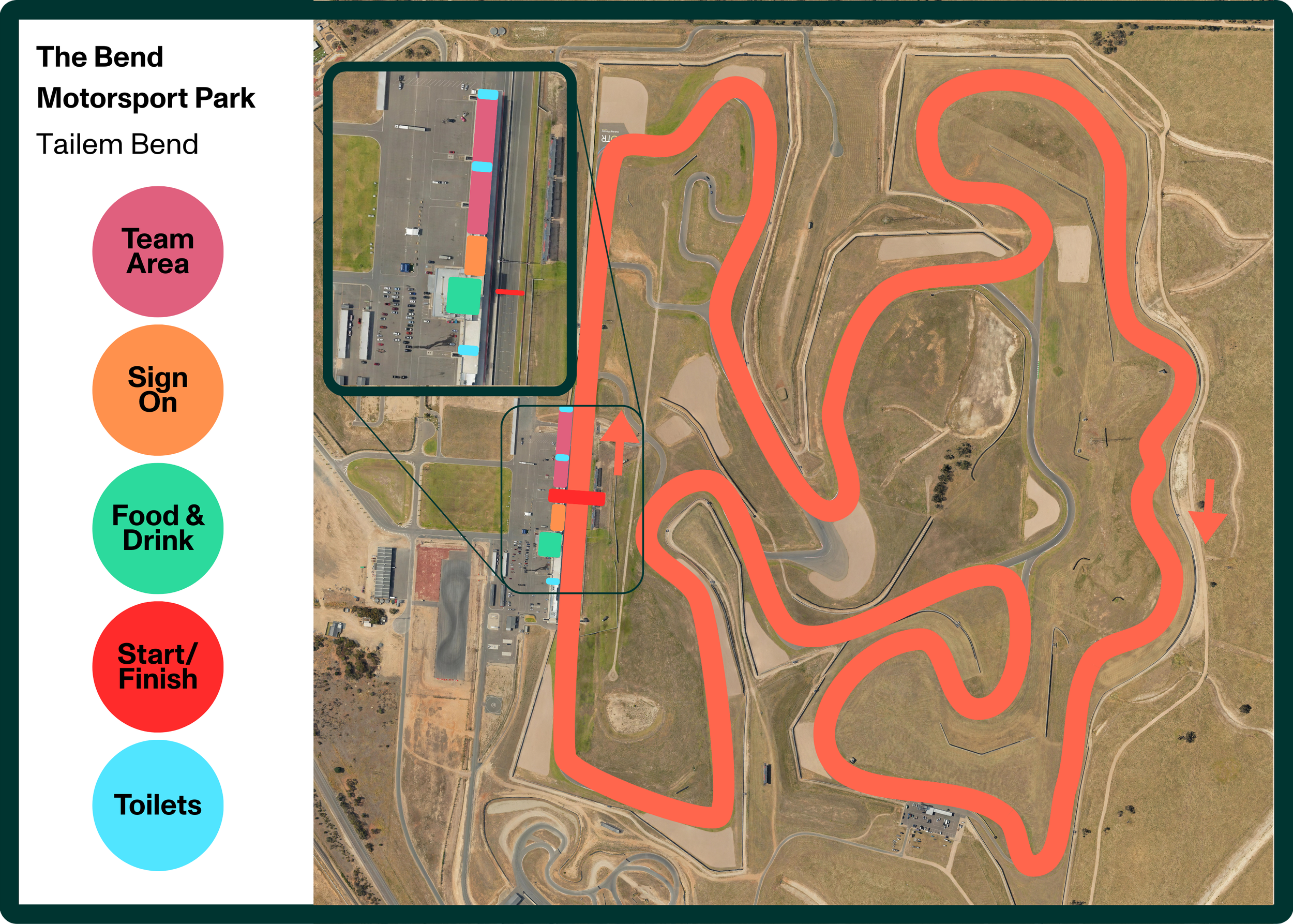 The Bend is steeped in bicycle racing, having previously hosted the 2018 state criterium championships and also rounds of the 2020, 2022, 2023 and 2024 Super Series. Racing will take place on the 7.7km GT Circuit - the longest circuit at The Bend Motorsport Park, and the second longest permanent race track in the world.
